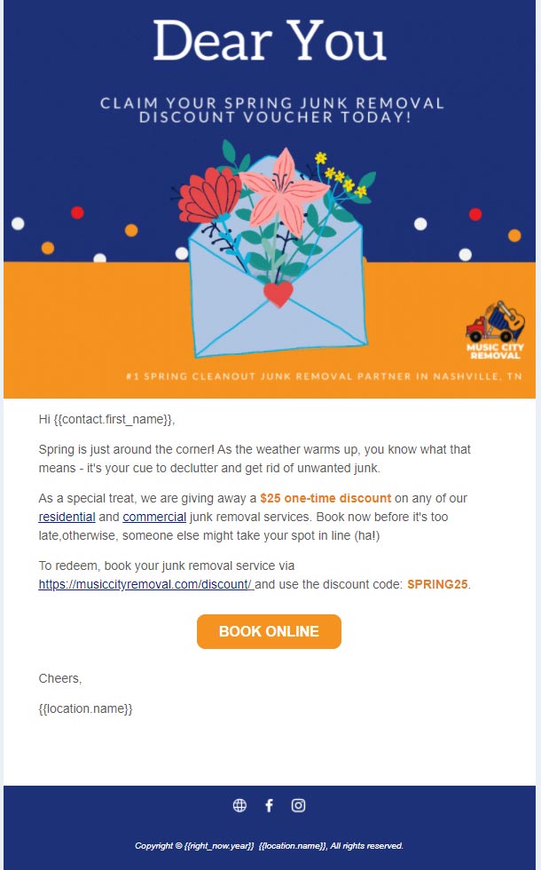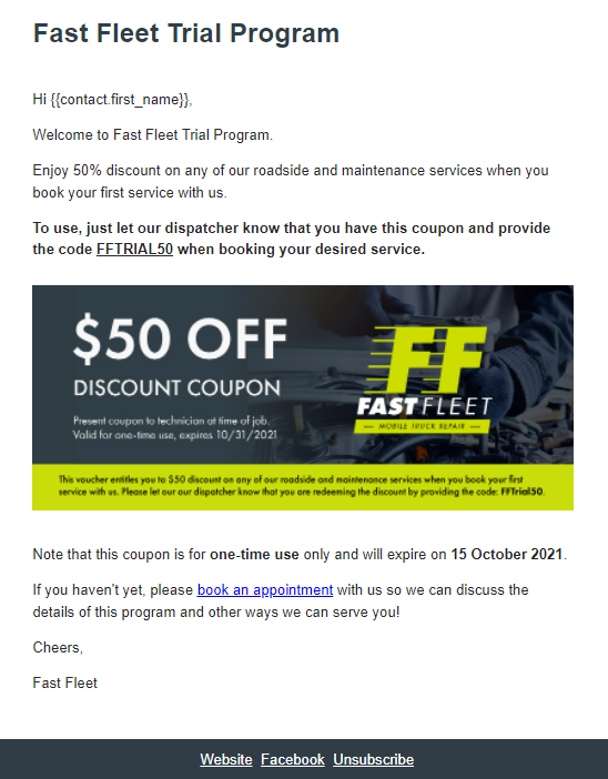 In general, the campaign would consist of regular communications, newsletters, special offers, perks, discounts, and exclusive dibs on what‘s new with your business.