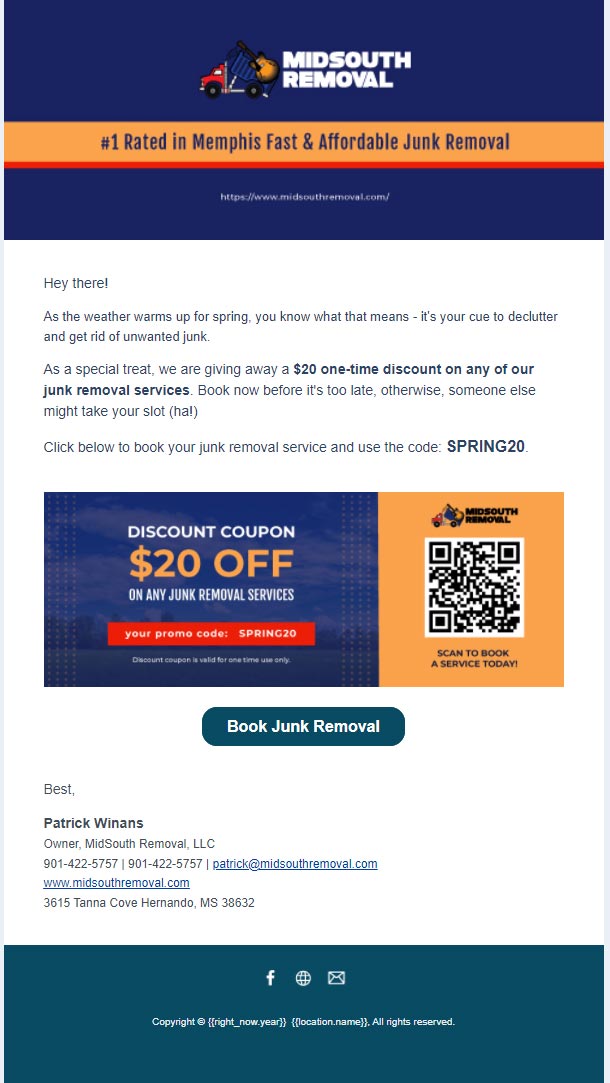 Promotional campaigns are created based on the seasonality of your business, demographics, and buying behavior of your target market. This could be in the form of a discount, limited-time-only perks, and others. The offer can be delivered in the form of email, SMS or both, campaign duration is 100% customizable.