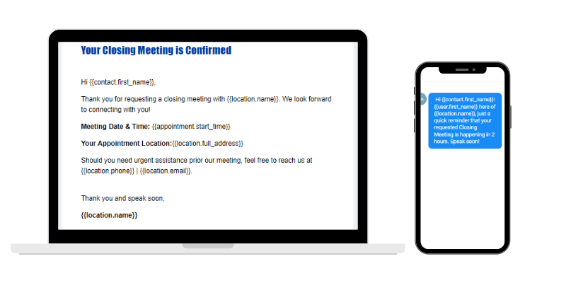 Once the Closing Meeting request is confirmed by the team, meeting confirmation and reminders are sent out to the prospective client via email and SMS.